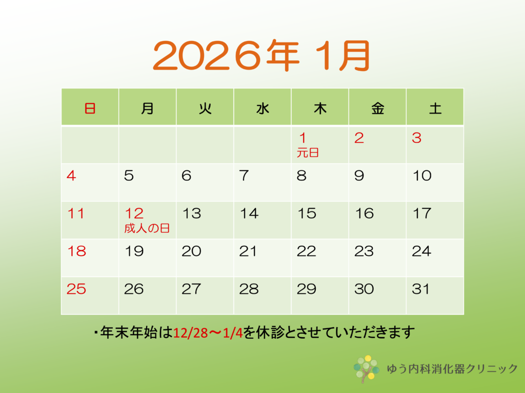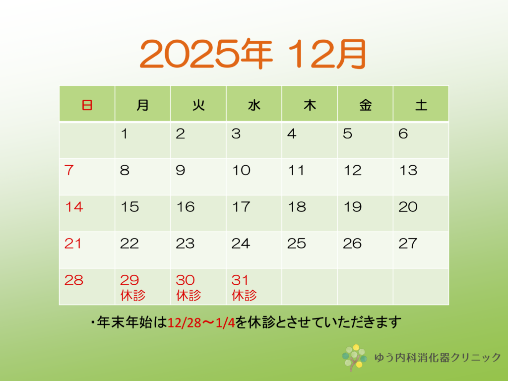 今年の年末年始は、12月27日が最終診療日となります。